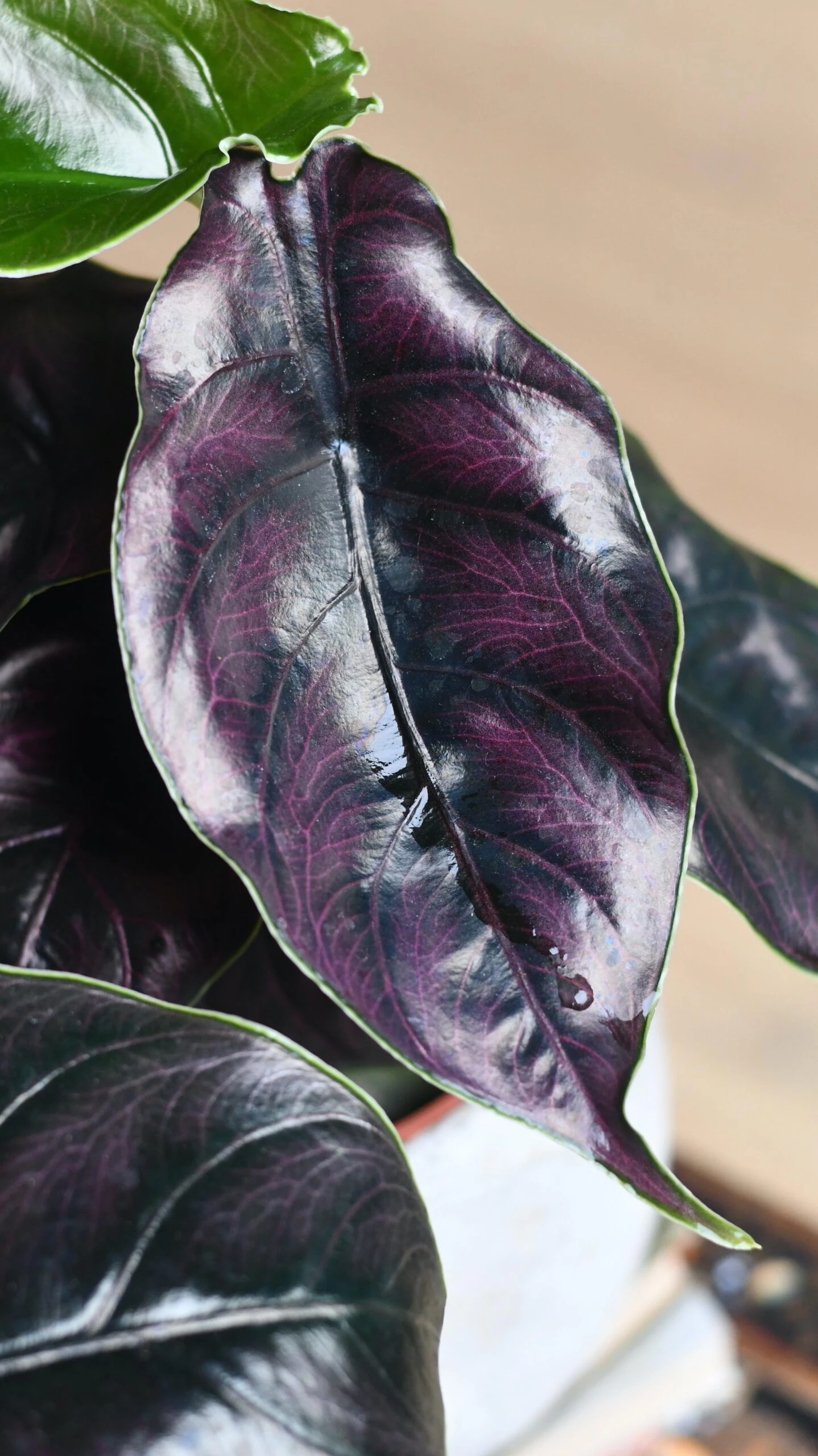 Alocasia Azlanii: ‘Red Mambo’ Jewel Alocasia is a very rare houseplant, we are lucky to be able to offer it to you. If you’re looking for online houseplants and you see this in stock then grab it while you can!