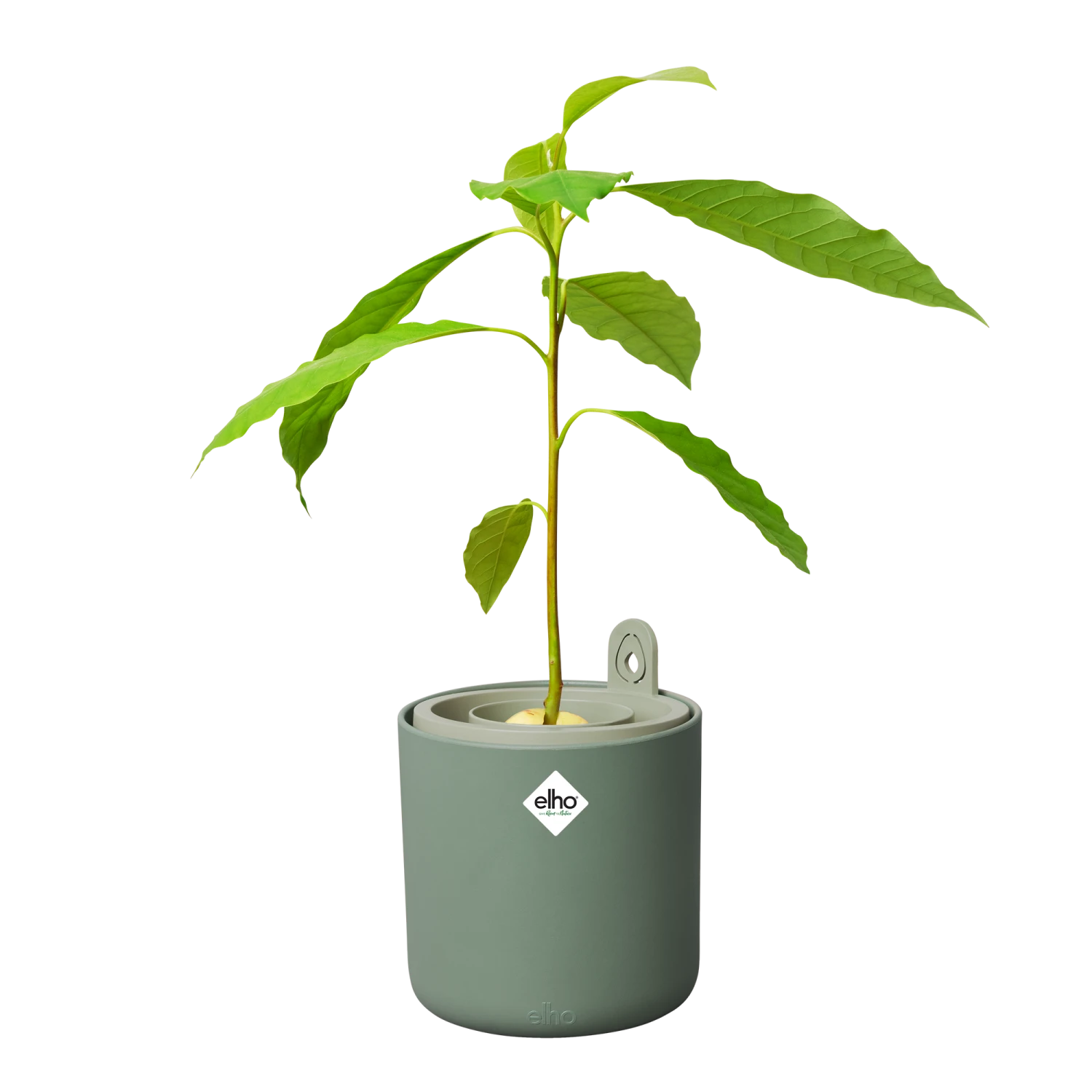 From stone to plant, After you’ve enjoyed a delicious avocado, keep the stone. Give it a wash and remove the brown outer skin. Place the stone round side down in the floater. Fill a flowerpot or dish with water and place the floater inside. Wait patiently and change the water once a week. After 3-4 weeks, the stone will start to split open, and roots will appear. You’ll see the first leaves after about 6-8 weeks. When the avocado plant is about 15 cm tall, replace the water with potting compost. Put it in a sunny spot and enjoy your own mini avocado tree!