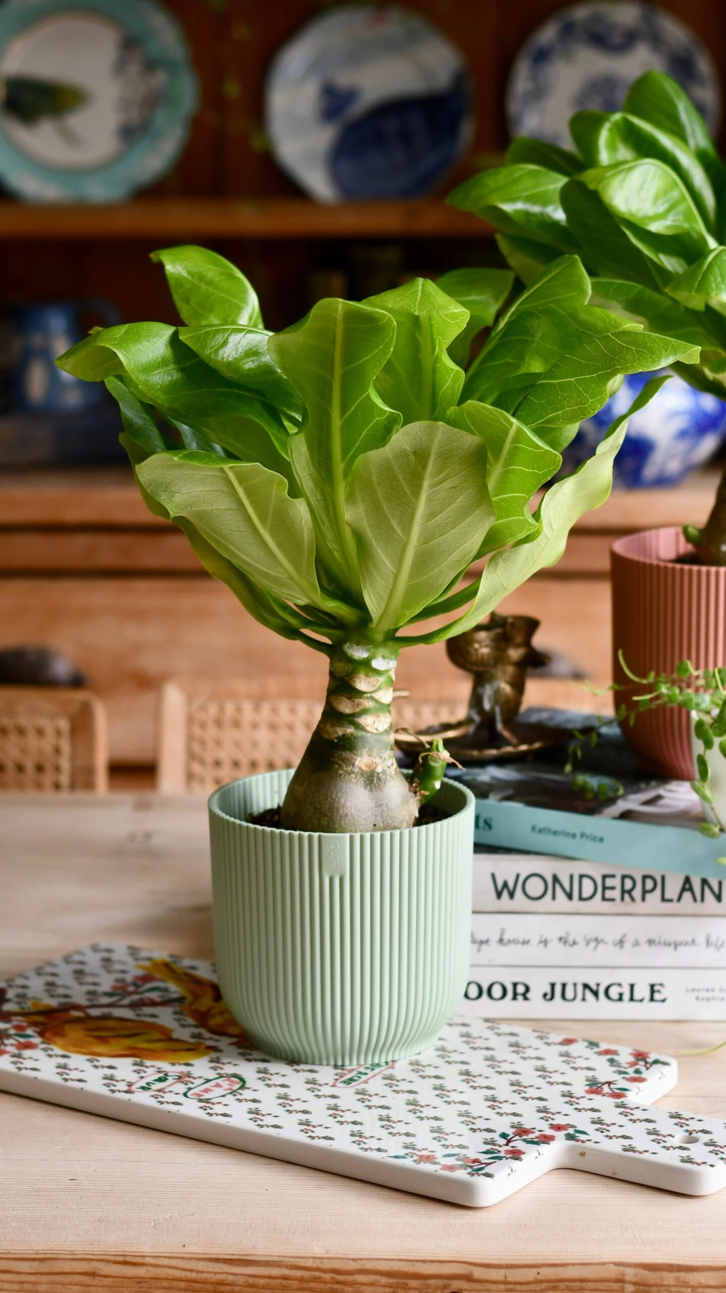 In the wild, Brighamia insignis is known for its long, slender stem and striking, trumpet-shaped flowers that range in colour from white to pale yellow. The leaves are fleshy and succulent, with a unique, silvery-grey hue that adds to the plant’s exotic appearance.