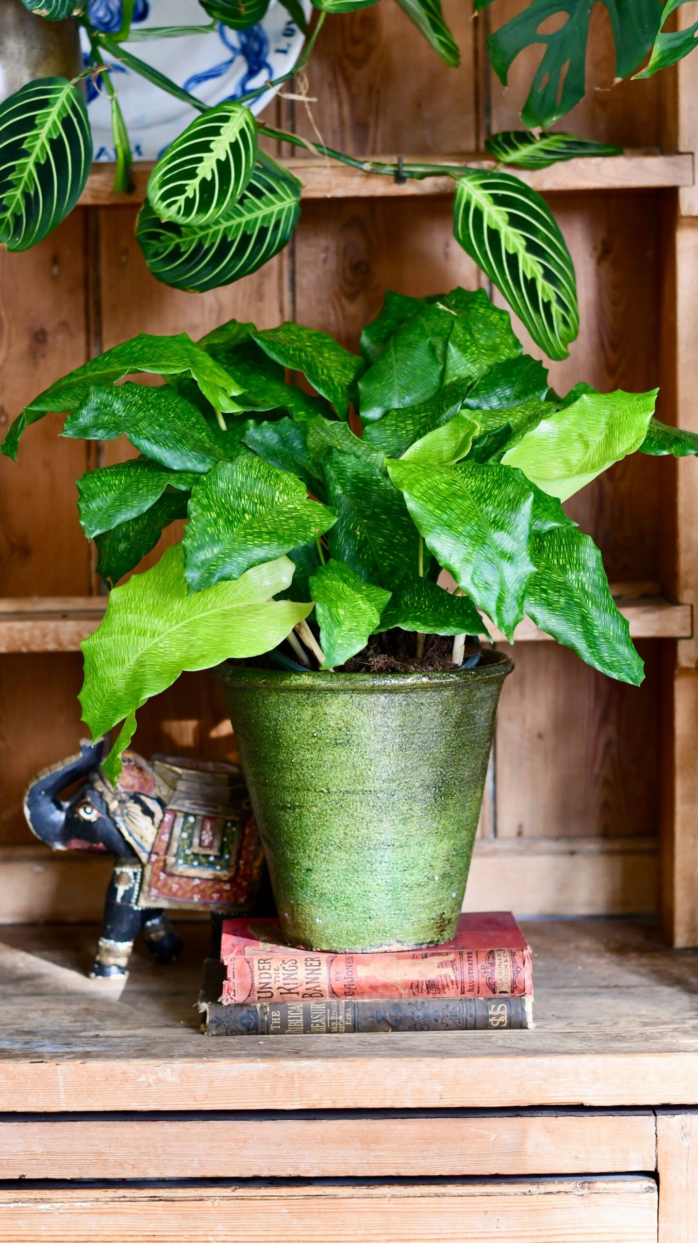 This plant is easy to care for and great for beginners. Make sure you keep the plant damp, away from draughts and heat sources and direct light, and it will thrive. Calathea like to grow in similar conditions to tropical ferns.Â