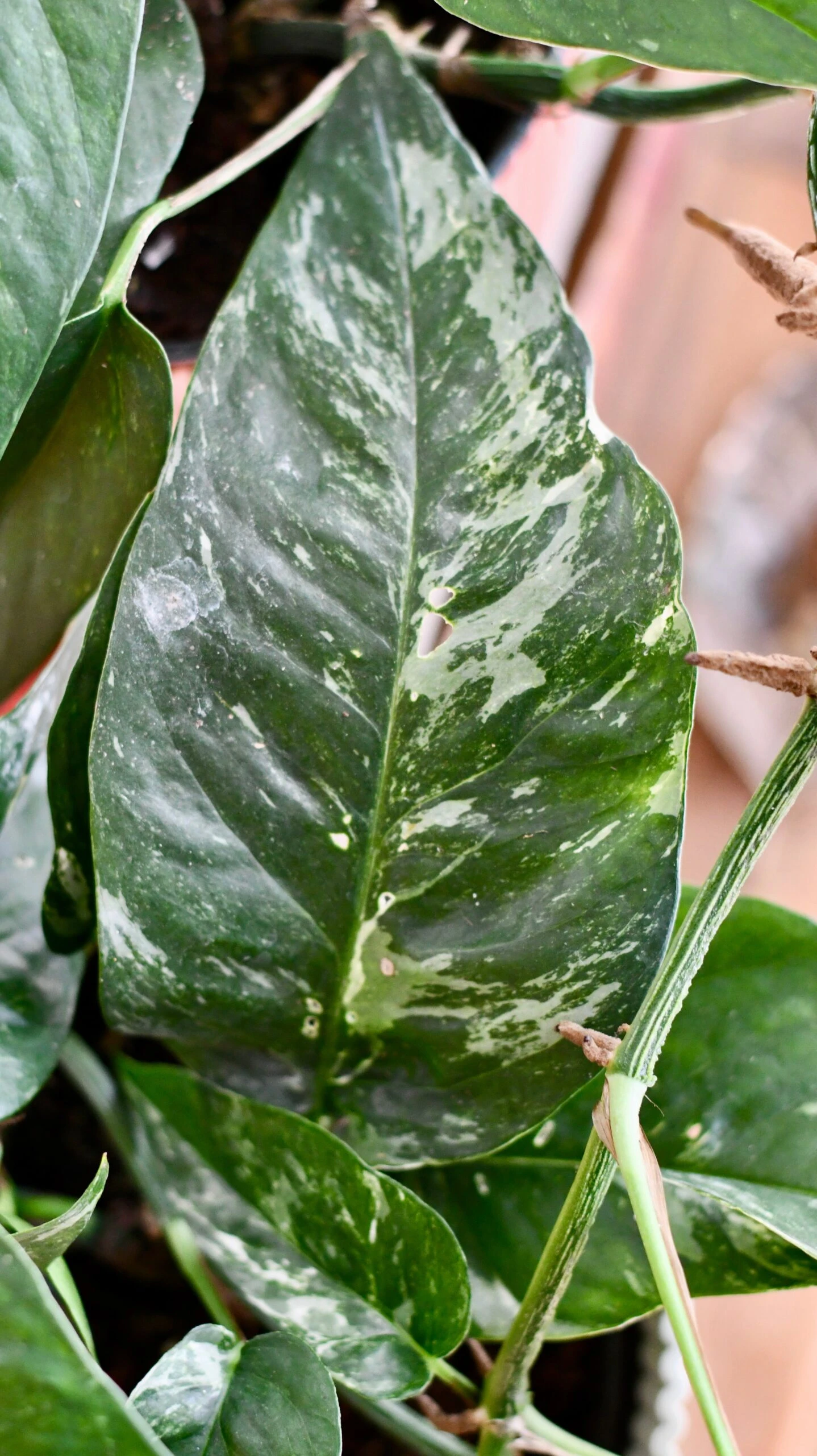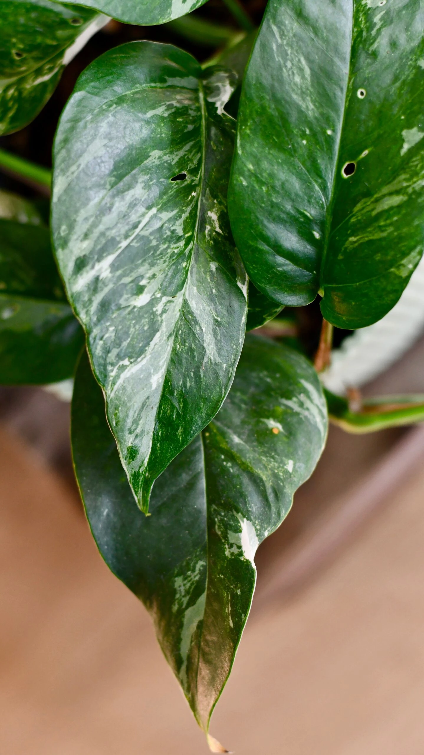 Epipremnum Pinnatum Variegated  has stable variegated leaves, unlike the monstera albo its ideal for hanging baskets and planters due to its delicate shaped leaves.Â