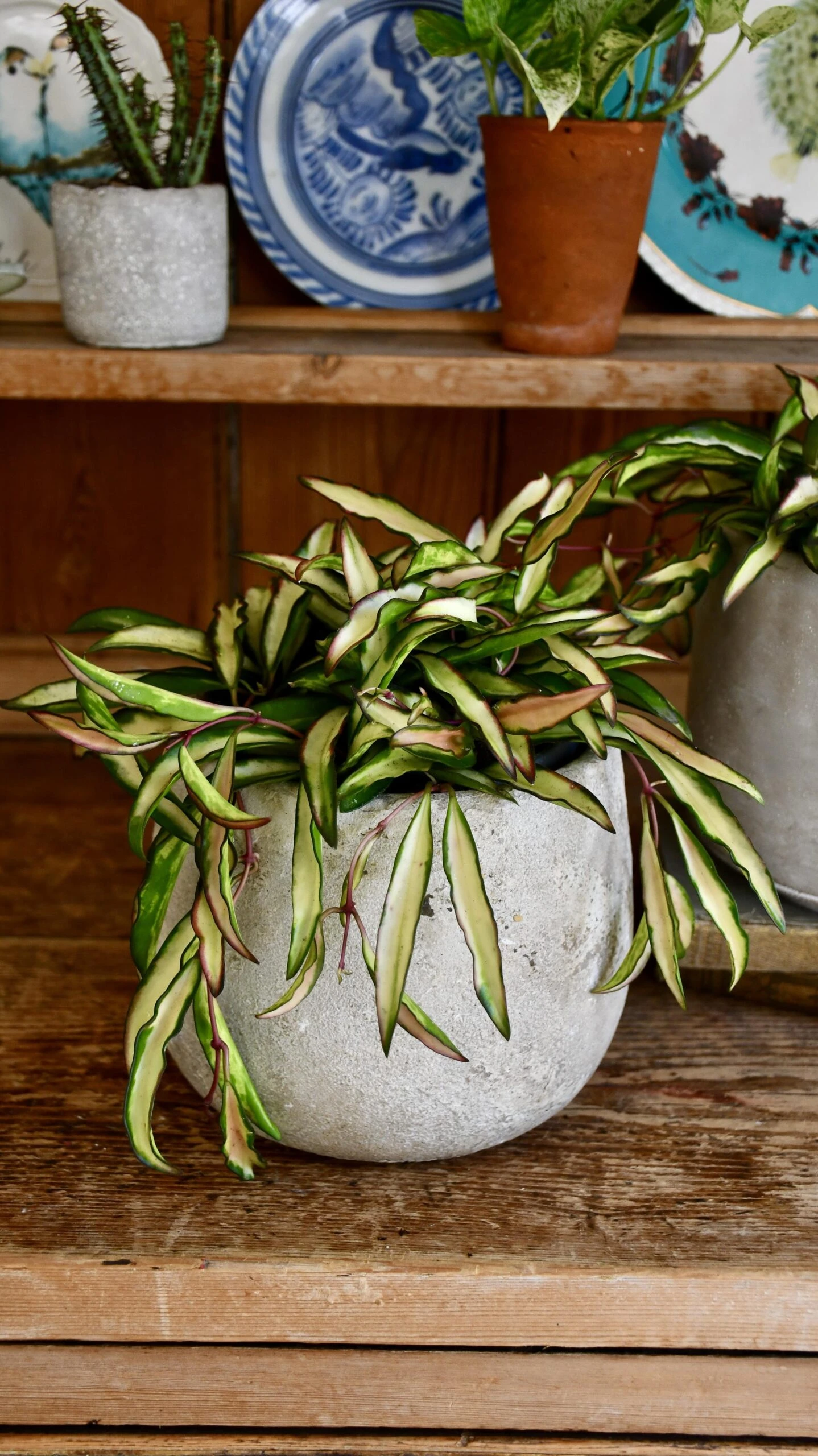 This Variegated Hoya needs its soil to dry out between waterings.