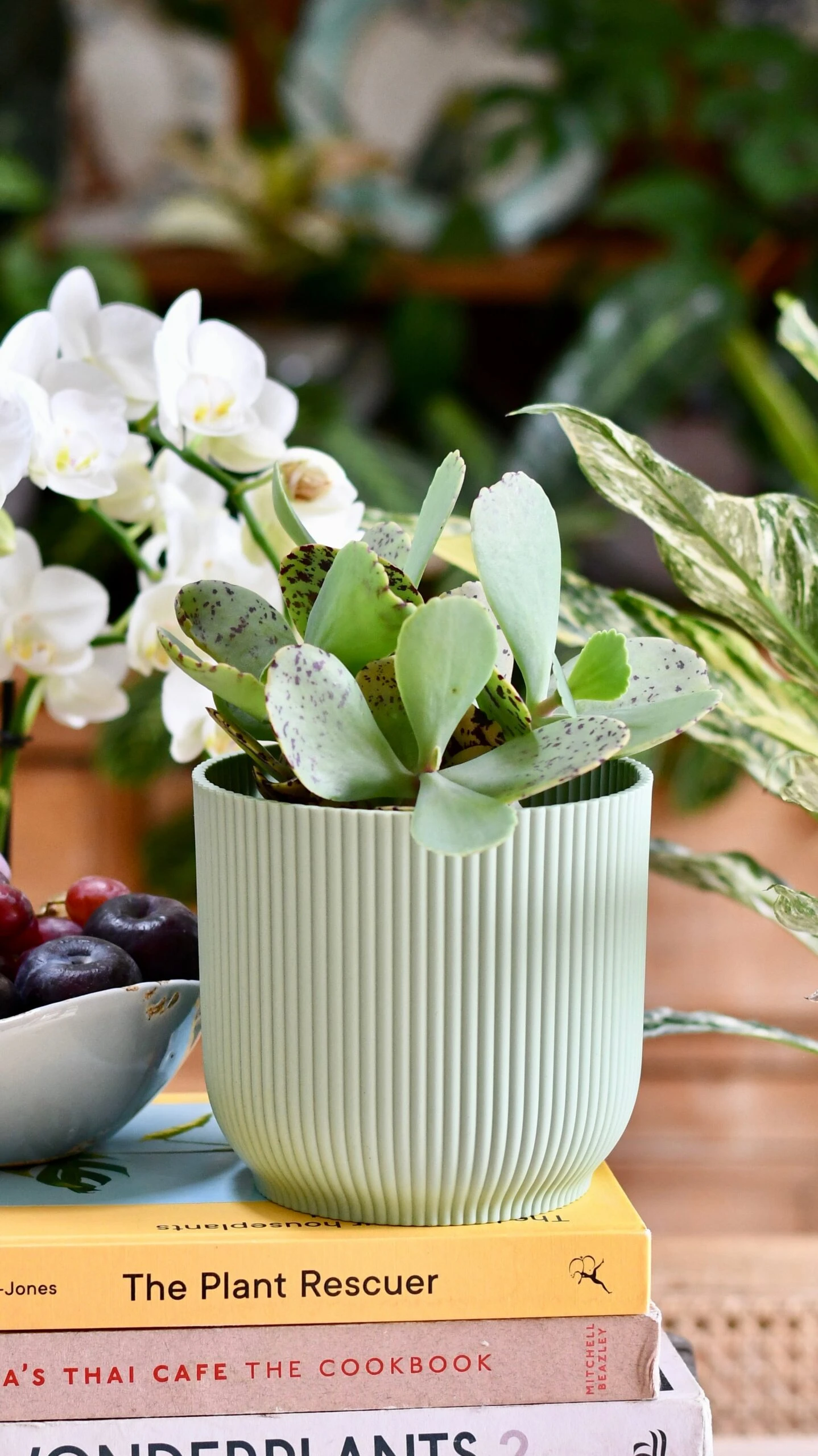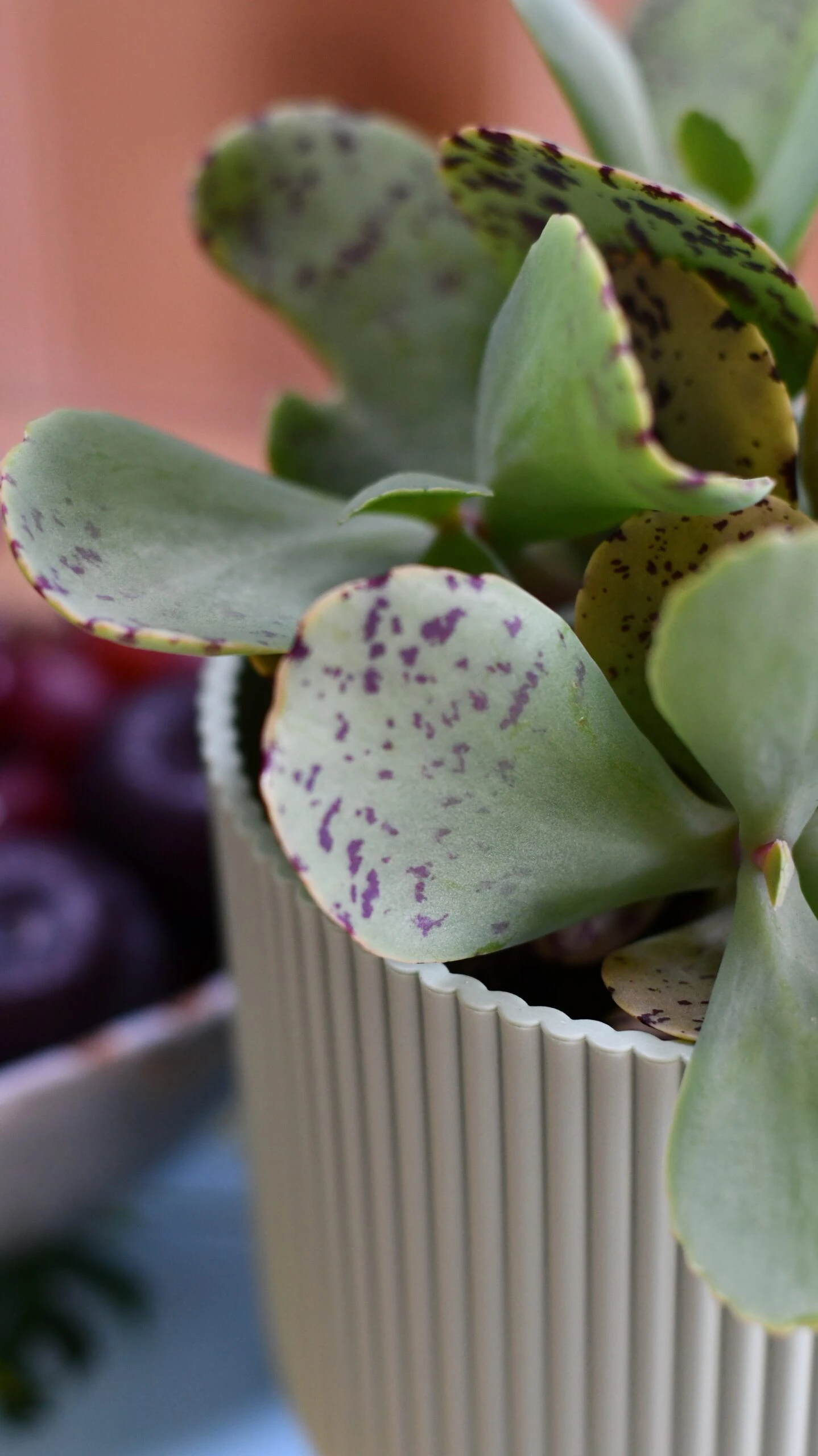 Kalanchoe marmorata ‘tiger’ likes bright indirect light, it will also enjoy a sunny spot. The brighter the light the more colour in the plant.