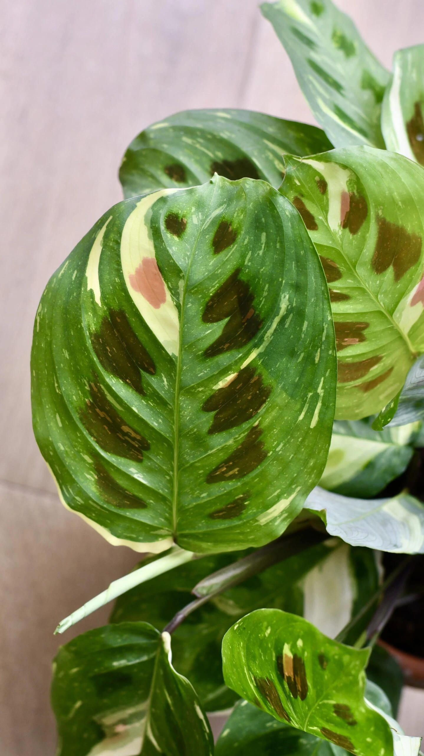 The Maranta Leuconeura Kercho or Maranta Fiesta is our new favourite plant; it’s stunning with a wide variety of colours and variegation. A beautiful variety of Prayer Plant that is hard to find and will grow happily as a potted or hanging plant. Incredibly easy care and a real ‘wow’ plant.