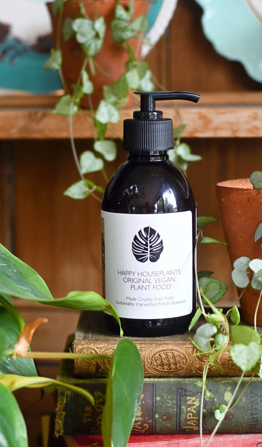 Feed once a month in spring and summer with liquid plant food. Why not try our own vegan, organic plant food?Â