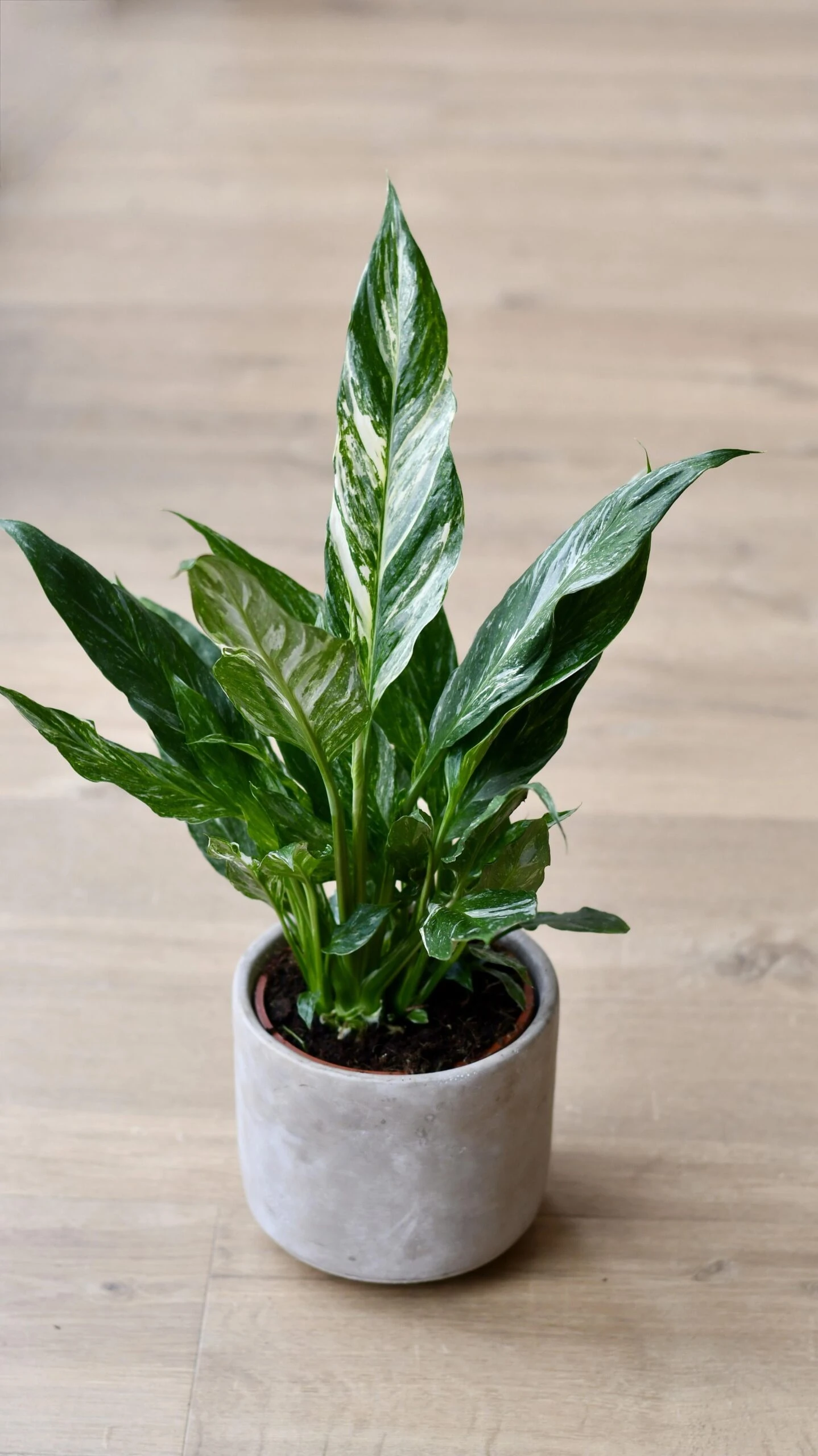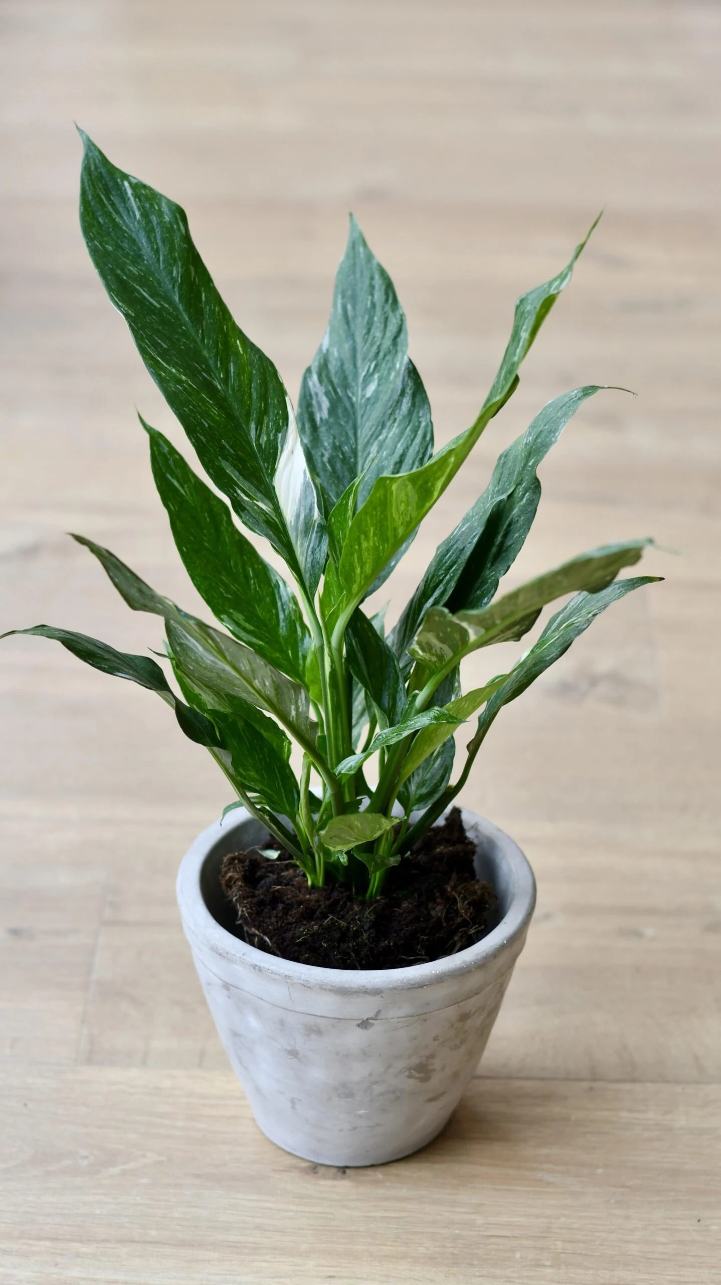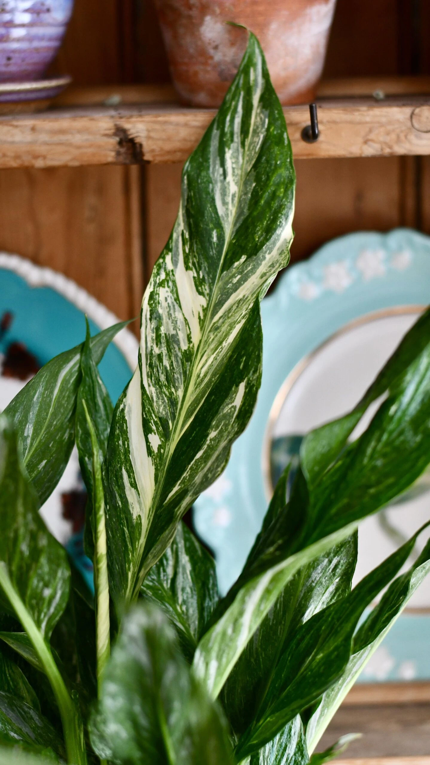 A long-time favourite Spathiphyllum, commonly known as the Peace Lily, is an adaptable and low-maintenance houseplant. The Spathiphyllum has unusual dark green and white variegated leaves.