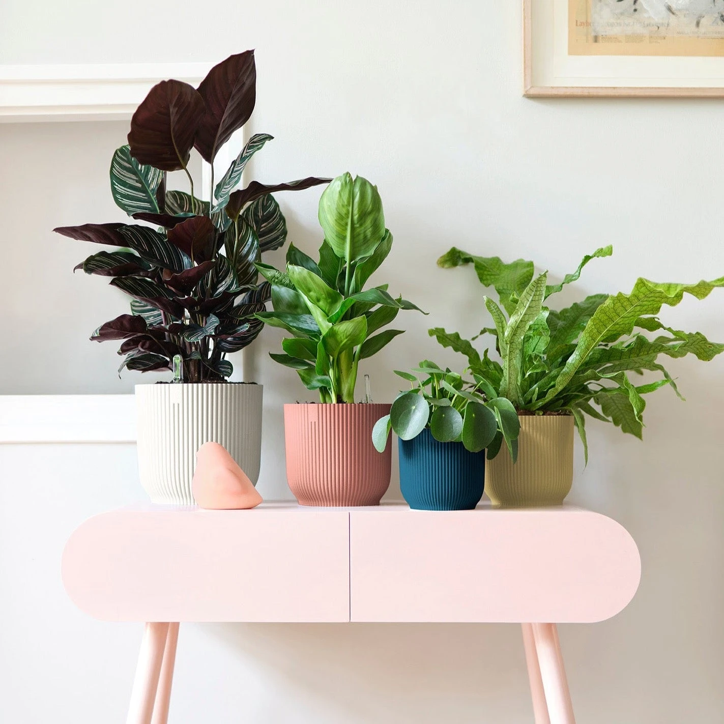 The new indoor vibes family fits perfectly into the vibes of a cosy, harmonious, fashionable, friendly interior. The pots will bring out the best in your indoor plants with their slightly rounded body, soft tones and decorative pattern.