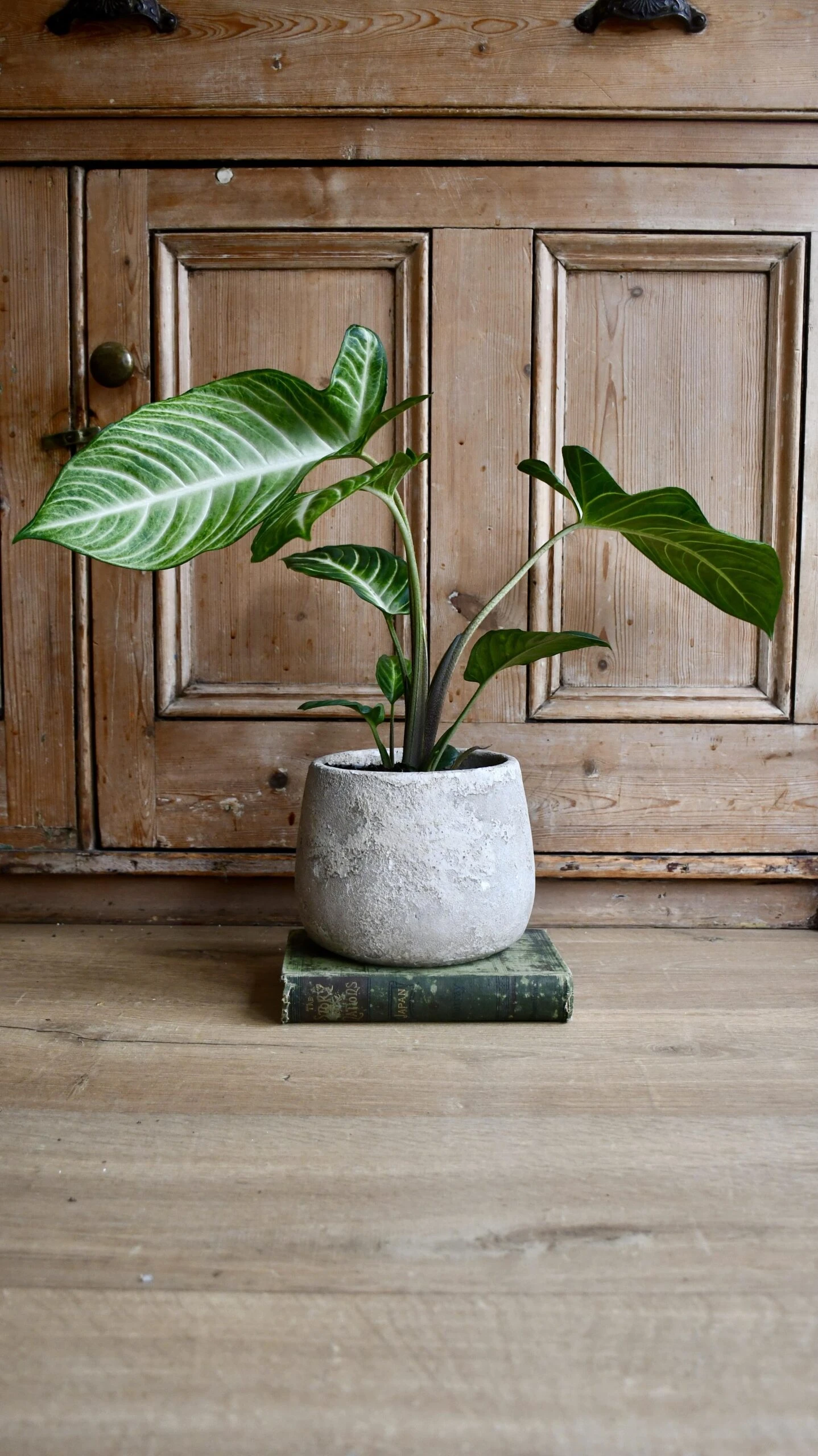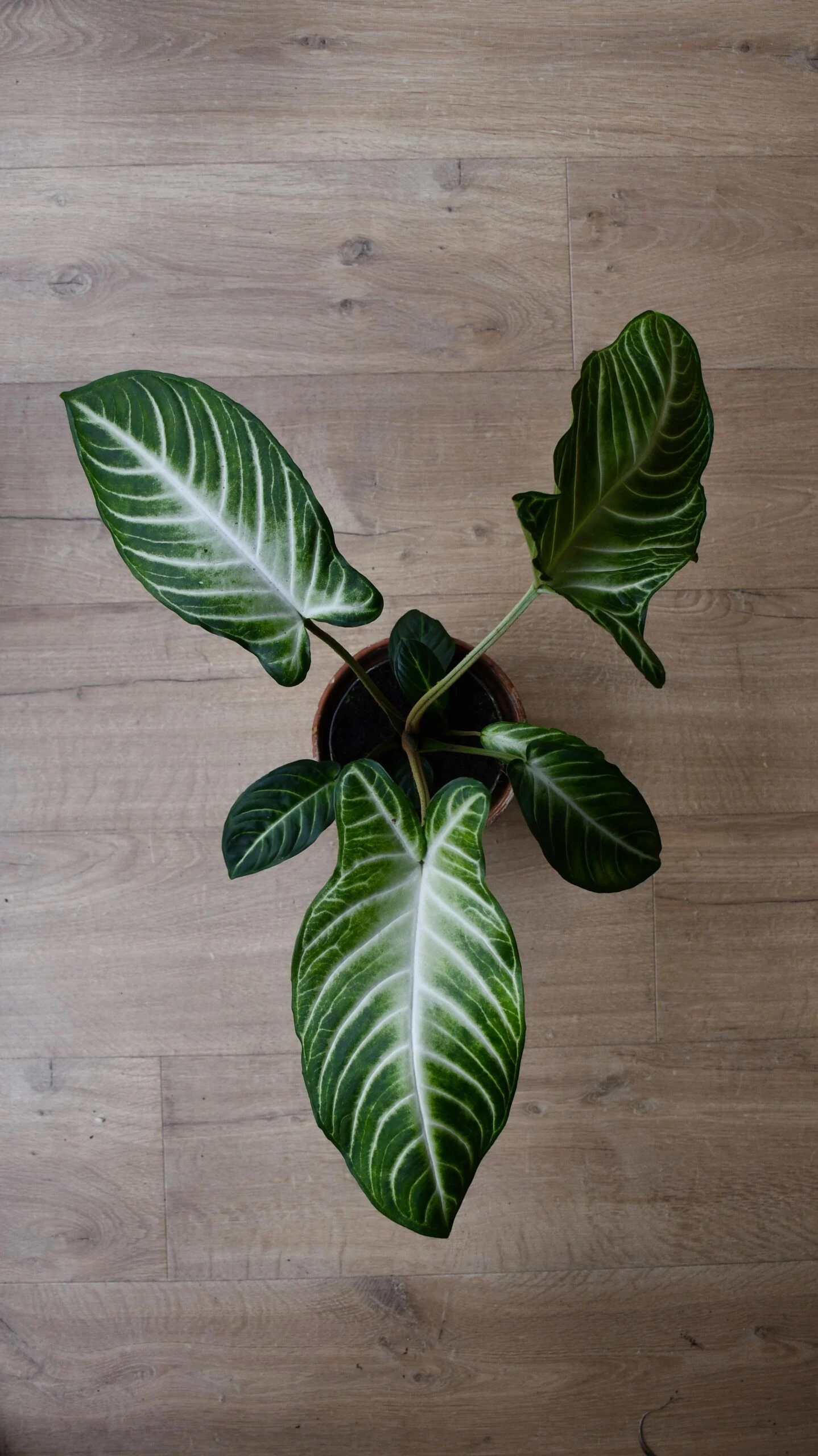Xanthosoma Lindenii or Caladium Lindenii natives of South America and make great rainforest style houseplants. Lindenii has magnificent large variegated green leaves with deep white veins that can take you to the deepest jungle on even the coldest and darkest days.